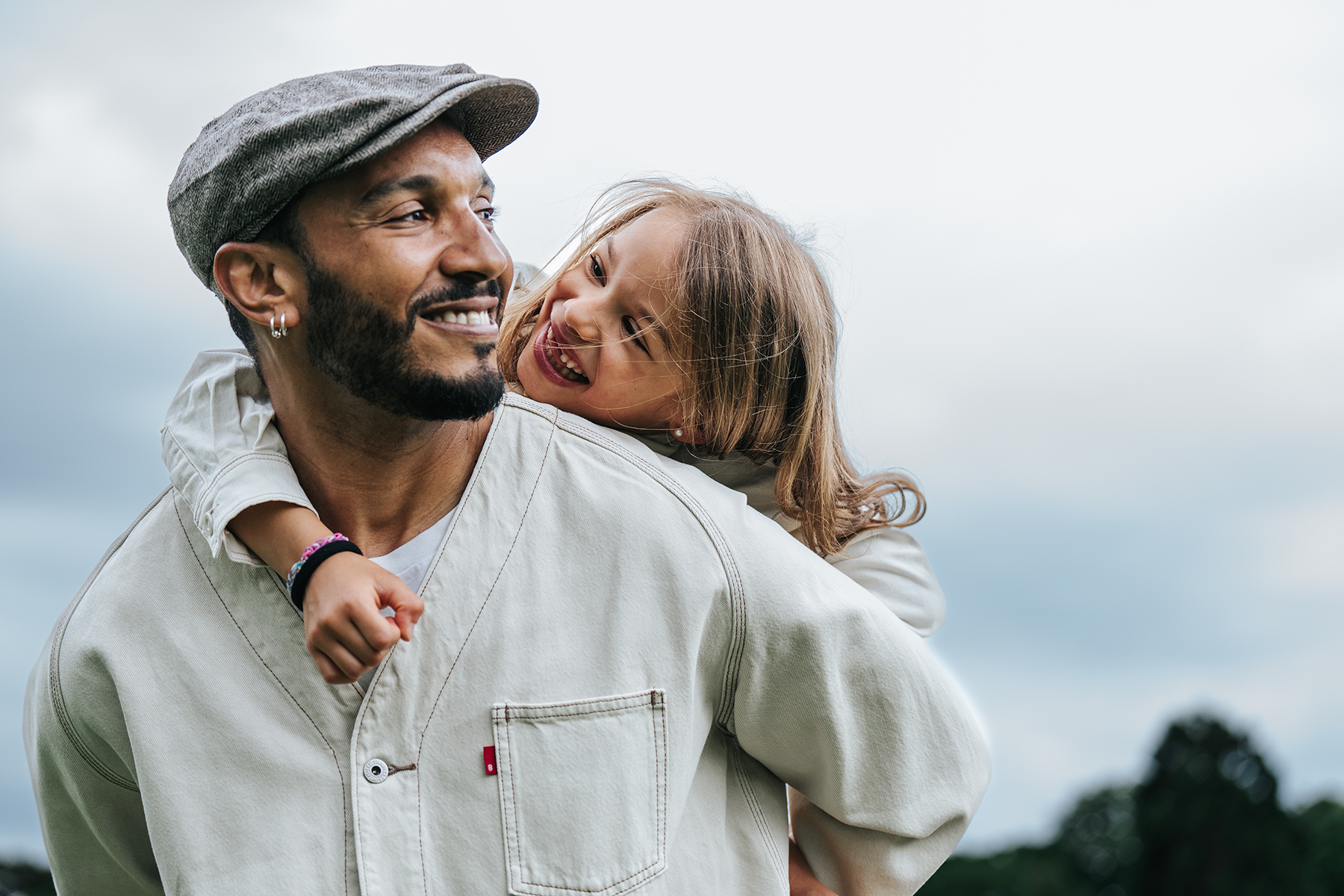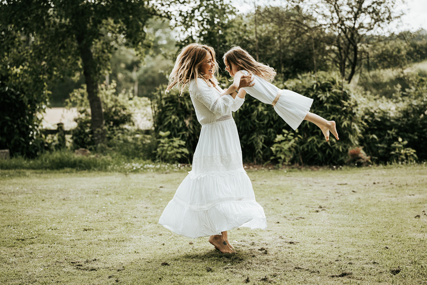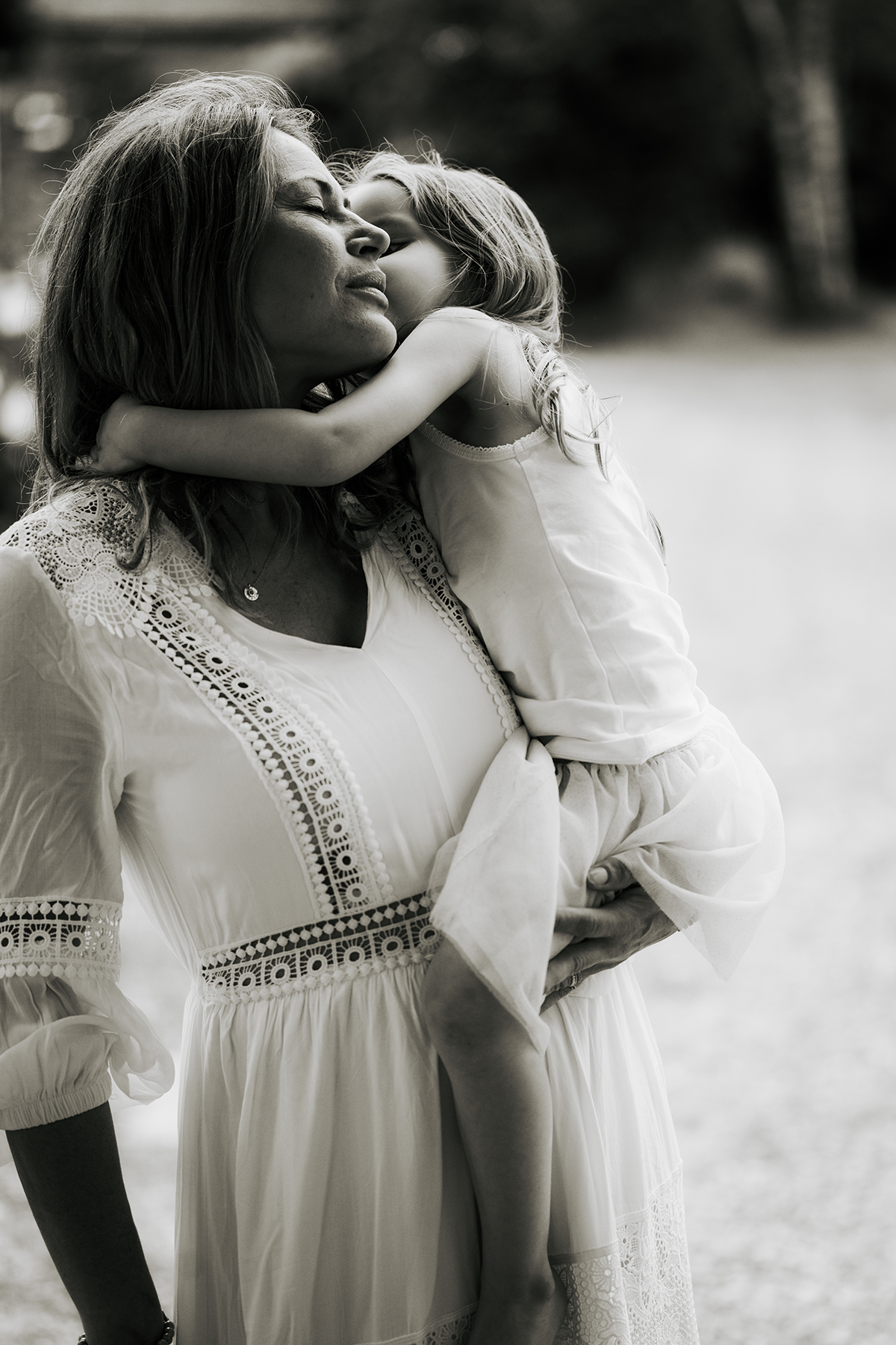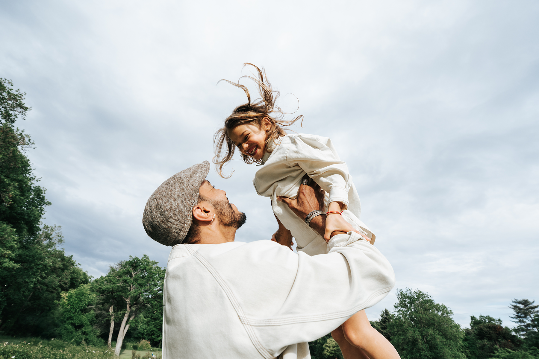 Pour les séances famille, je travaille en extérieur — dans un parc, un jardin, ou tout lieu qui vous ressemble. La lumière naturelle, l'espace, la liberté de bouger : c'est dans cet environnement que les vrais moments arrivent.
